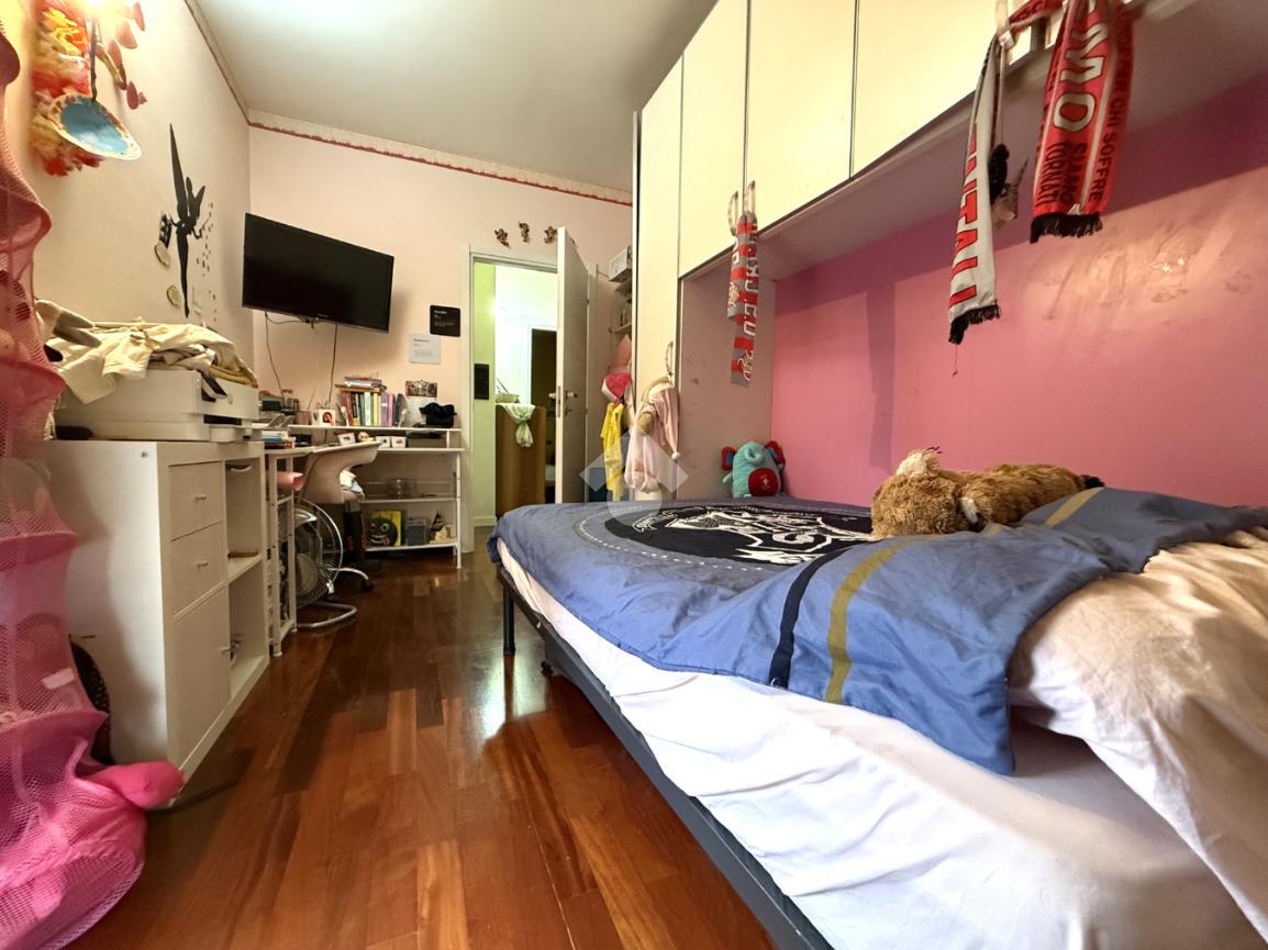 La zona notte è ben disimpegnata e composta da due camere da letto: una camera matrimoniale di ampie dimensioni, con spazio per armadiatura completa e accesso diretto al balcone; una seconda camera, perfetta come stanza per figli, studio o camera ospiti, servita balcone e da un secondo bagno finestrato attualmente utilizzato come lavanderia. Un bagno di servizio finestrato e dotato di doccia completa il reparto notte.